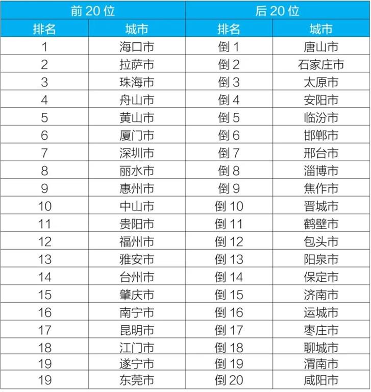 2020年10月168個(gè)重點(diǎn)城市排名前20位和后20位城市名單